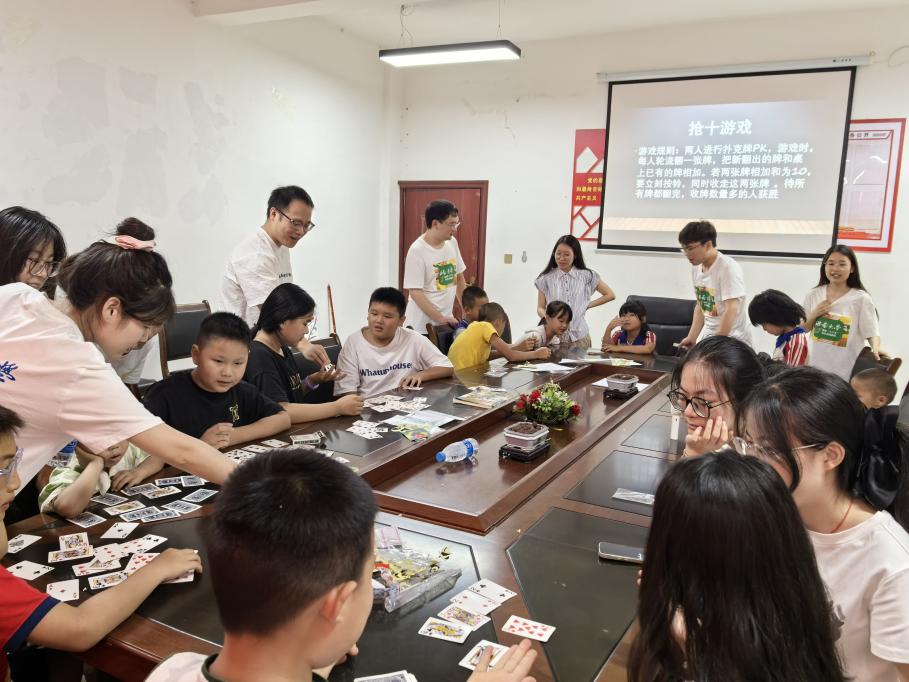 红色故事分享会上,赵世炎、小萝卜头宋振中、王二小的英勇事迹深深打动了村里的孩子们。学唱《哇哈哈》的稚嫩歌声里,爱国情怀悄然萌发。数学课堂则化抽象为趣味,DIY沙画、“逢3跳”、“抢十游戏”、“看数字猜成语”等互动游戏,让孩子们在笑声中感受思维碰撞的魔力。