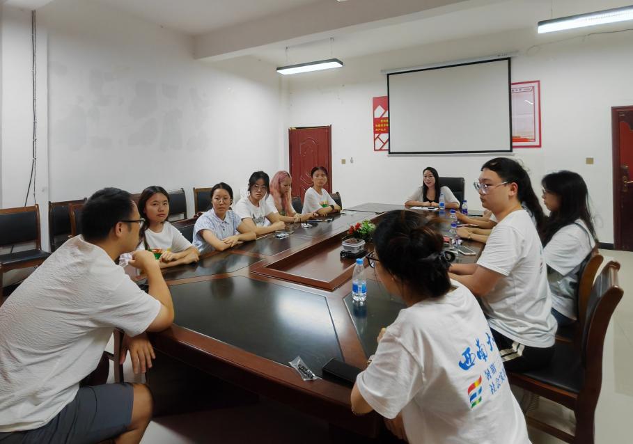 图为村支书张国旗与实践团队围坐交谈。廖敏莉 供图