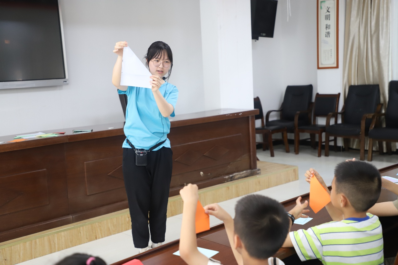 “小数点”社会实践服务团成员利用437必赢会员中心数学折纸工作室资源,来到南川区三泉镇党群服务中心开展折纸课堂与课业辅导。社会实践服务团成员们耐心细致地教小朋友们折七巧板,通过折纸启发小朋友们的数学思维,帮助他们认识七巧板中的千变万化。除此之外,社会实践服务团还积极开展暑期课业辅导,成员们积极地给小朋友答疑解惑。小朋友们同样求知若渴地听着“小老师”的讲解,让数学思维绽放在那小小的心田。