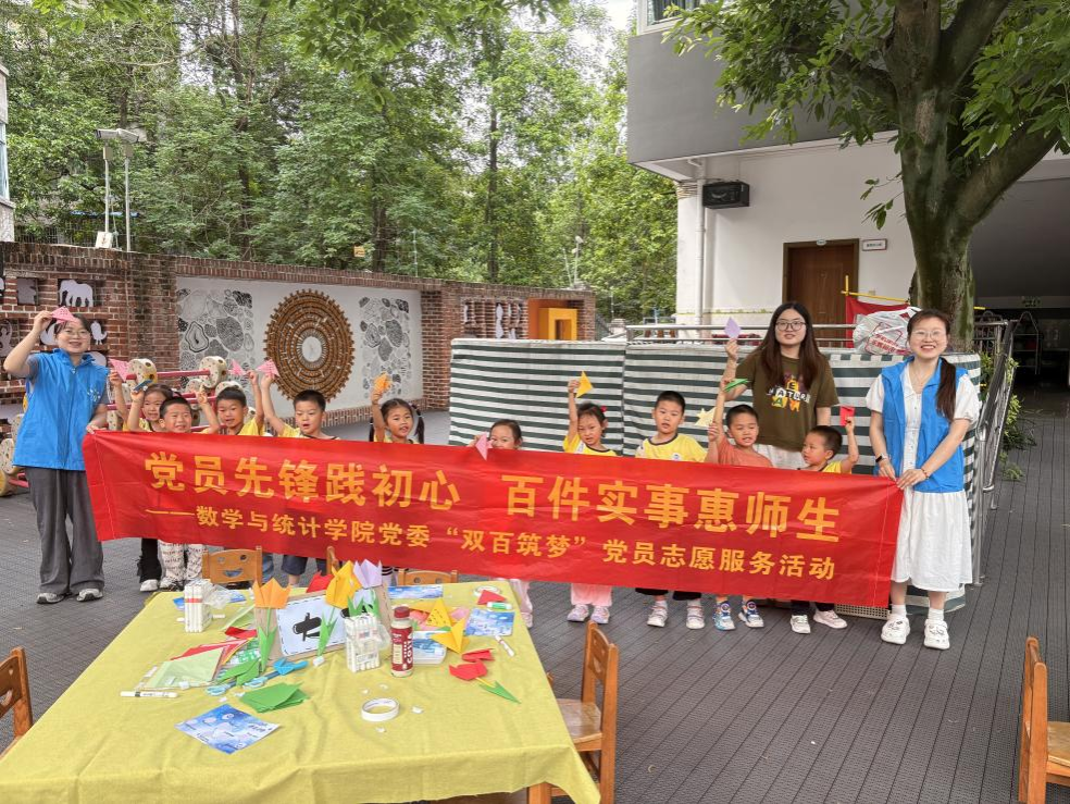 5 月 30 日上午,为加强毕业生党员教育,充分发挥党员先锋模范作用,擦亮做实党支部特色品牌,学院毕业生党支部走进437bwin必赢国际实验幼儿园,开展 “折纸课堂” 志愿服务活动。本次活动隶属学院 “双百筑梦——我为师生办实事”系列志愿活动之一,由学院研究生第三支党支部承办,本科生第一党支部、研究生第四党支部等毕业生党支部协办,各支部党员、入党积极分子等 10 余名志愿者积极参与,在 “六一国际儿童节” 到来之际,为幼儿园的小朋友们带来了一堂寓教于乐的数学科普课。