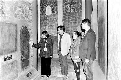 在渭南市蒲城县博物馆内,讲解员正在向游客介绍齐三贵家业地亩记碑的内容。李永红 摄