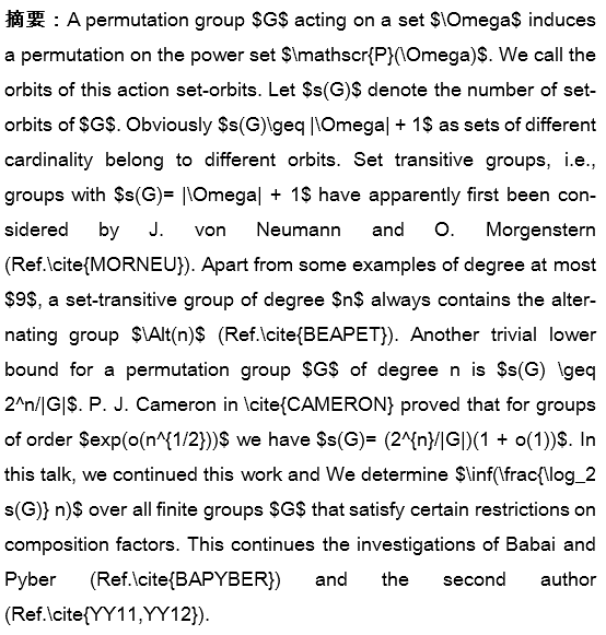 报告题目:Permutation Groups and Set-orbits on the Power Set