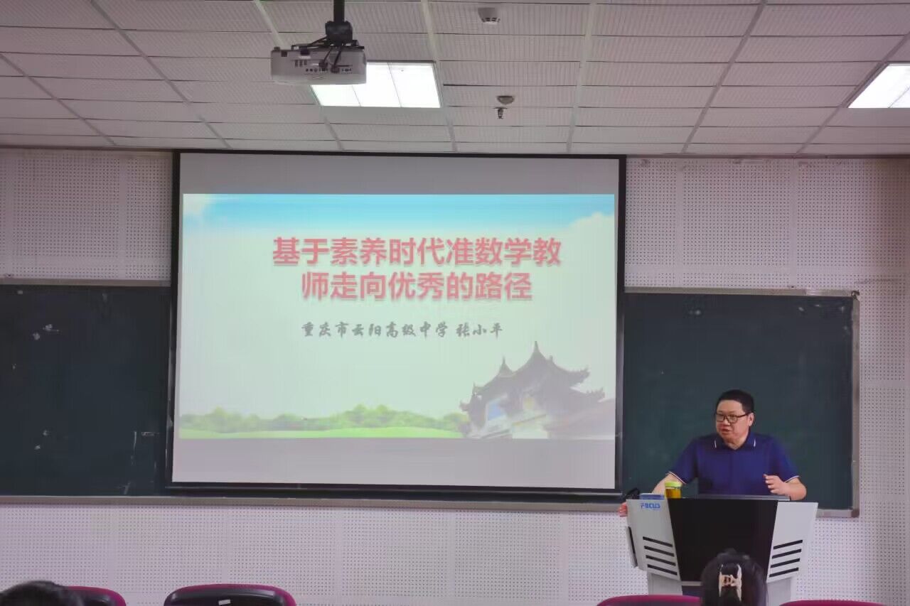 为贯彻落实习近平总书记给北京师范大学“优师计划”师范生的重要回信精神,提升“优师计划”师范生综合素养、学科素养、职业素养,助力培养“优师计划”师范生的教育情怀和实践创新能力,六月中旬,学院特别邀请了来自重庆市云阳高级中学的特级教师张小平和重庆市教育科学研究院的特级教师张晓斌两位专家,为优师计划的同学们分别开展了以《基于素养时代准数学教师走向优秀的路径》和《数学课堂教学艺术探讨》为题的主题报告。