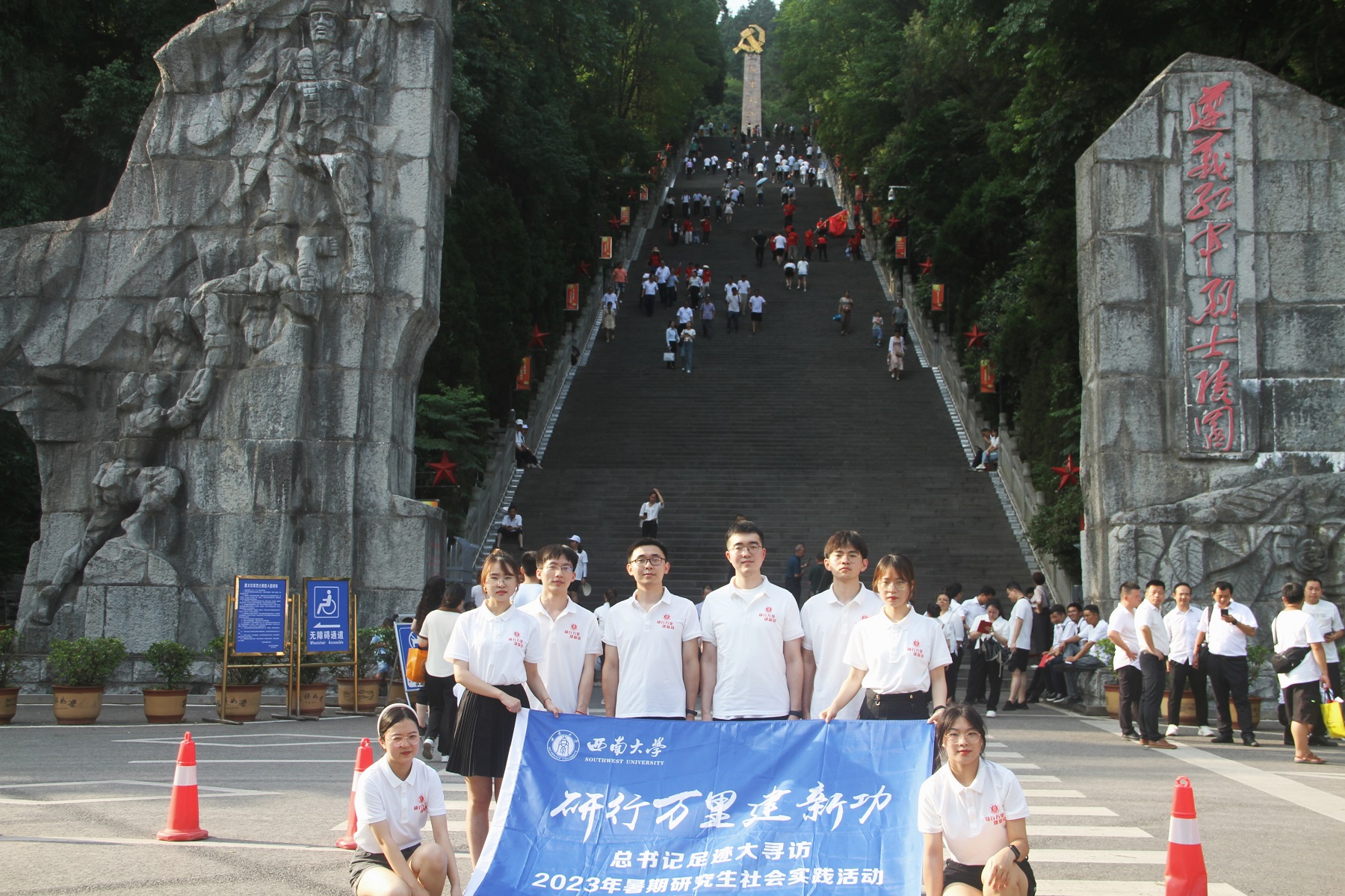 为深学笃行党的二十大精神,推动学习贯彻习近平新时代中国特色社会主义思想主题教育走深走实,2023年暑假,学校党委研究生工作部组织广大研究生开展习近平总书记足迹大寻访社会实践活动。学院积极响应,组建“青春铸魂”实践队和“战旗飘飘”两支实践队,于7月1日至4日分别奔赴贵州省遵义市、黔西市和四川省郫都区开展研究生暑期社会实践活动。