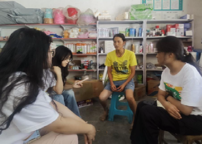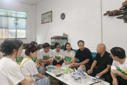 图为村支书张国旗与实践团队围坐交谈。廖敏莉 供图