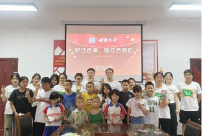 图为实践团队与光明村小朋友合唱红色歌谣。廖敏莉 供图