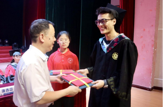 在激昂奋进的音乐声中,易遵尧书记为我院到场的毕业生颁发毕业证书,常务副院长刘贤宁为毕业生们拨穗授位。