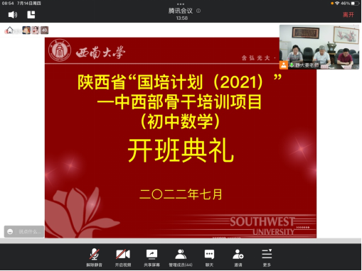 以提升陕西省初中数学骨干教师教学能力提升培训为主题的陕西省“国培计划2021”——中西部骨干培训项目(初中数学)于2022年7月14日在线上正式开班,来自陕西省的48名教师齐聚云端,开启研修之旅。