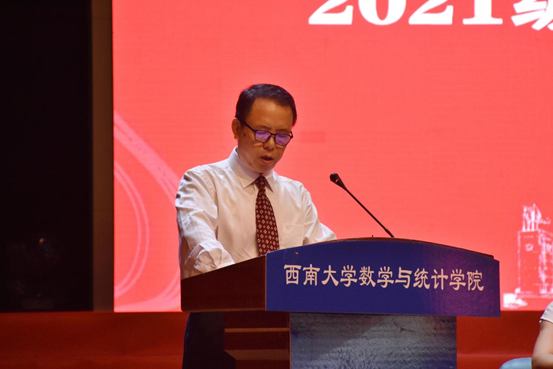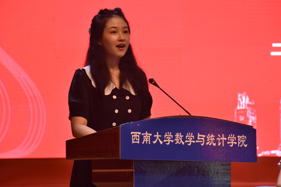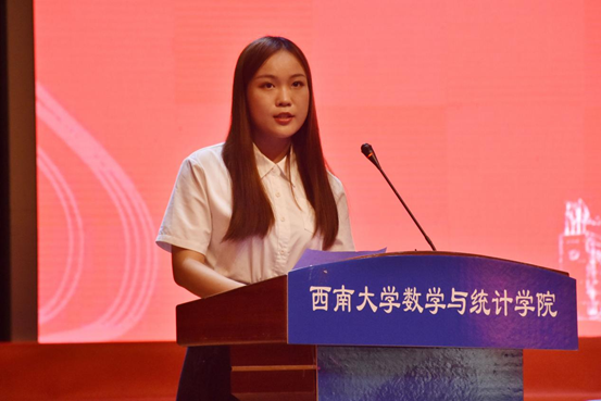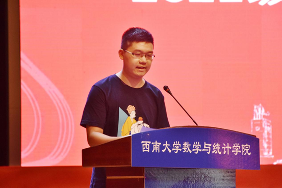 2021级研究生新生代表冯佳敏表达了进入437bwin必赢国际学习的欣喜与自豪,与新生们分享了考研的经历和感悟,激励全体新生携手共进,在攀登数学高峰的路上留下脚印,为服务国家富强、民族复兴、人民幸福绽放青春光彩。紧接着,2021级本科生新生代表周程鹏发言,分享了对于校训及大学学习的认识,表达了对大学生活的美好憧憬,并郑重承诺要努力做一个好学、敬业、德高、技强的西大人。