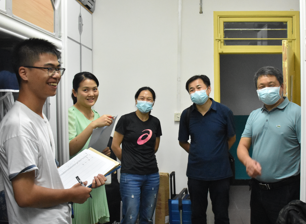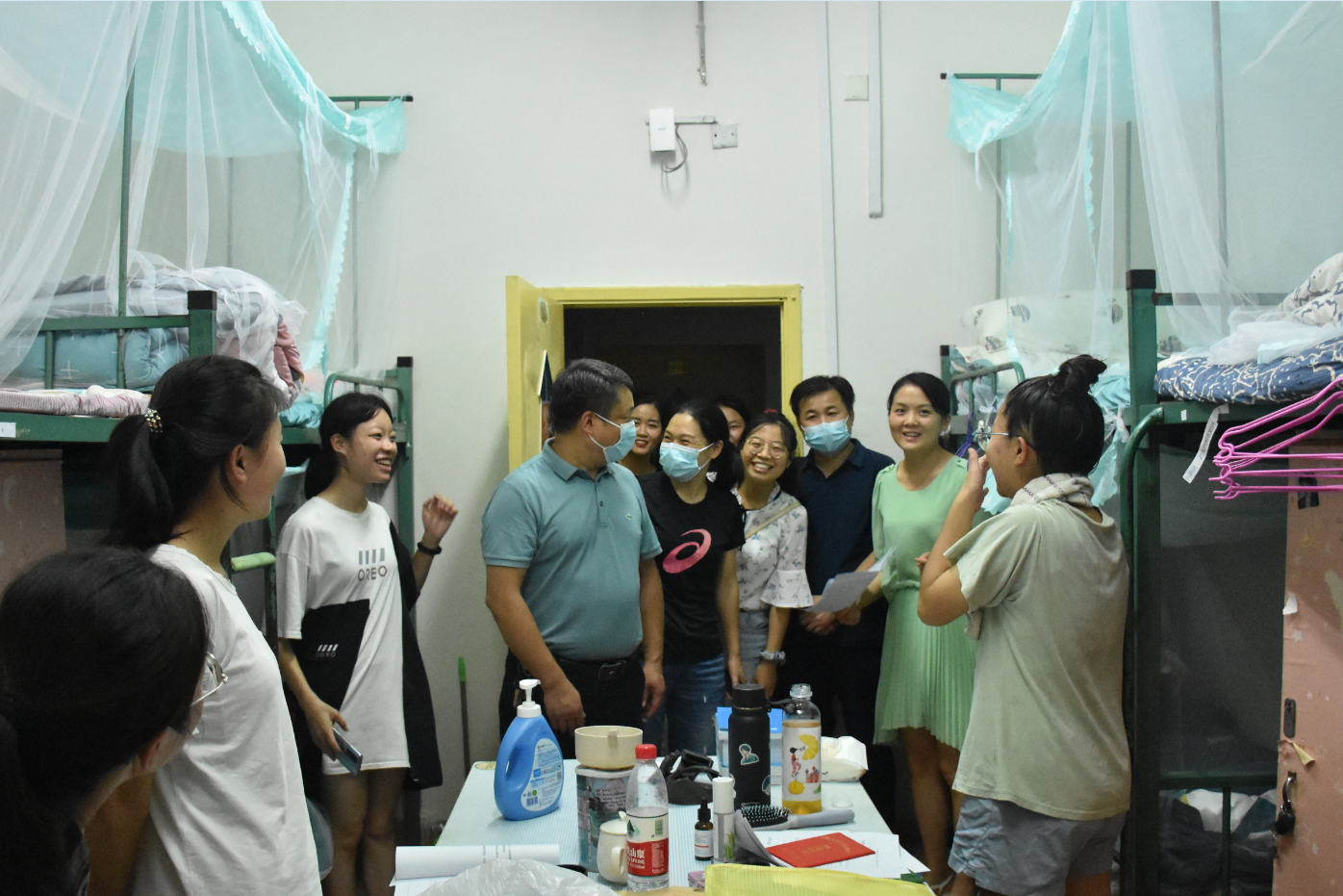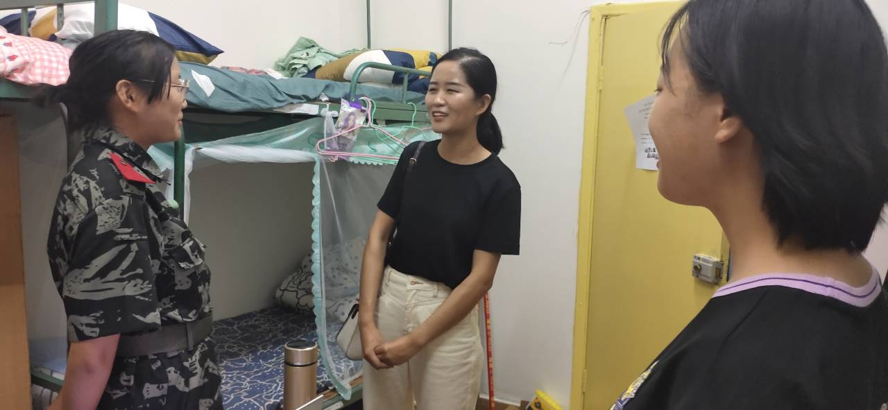 同时,2021级新生班主任也都亲自走访了各班寝室,除了贴心询问同学们衣食住行是否习惯、军训期间是否不适等,班主任还嘱咐同学们珍惜大学生活,尽快适应大学的学习节奏,扣好专业学习的“第一颗扣子”。 寝室里欢声笑语,洋溢着师生间的融融情谊。亲切的言谈中,同学们感受到了来自学院的阵阵温情。