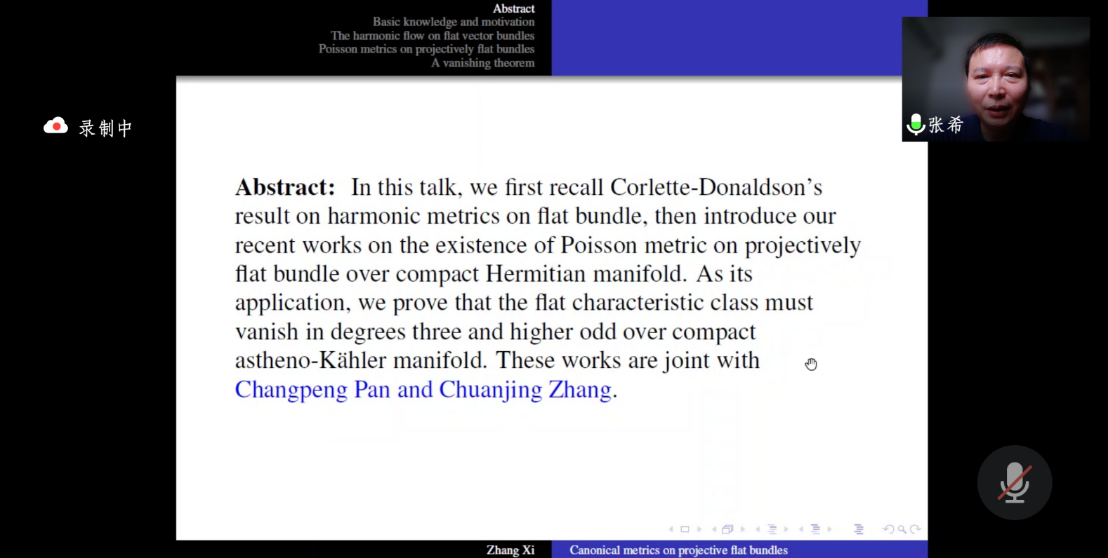 会议邀请的专家报告于上午九点正式开始。本次会议中朱熹平教授(原中山大学副校长)、刘克峰教授(加州洛杉矶大学教授,重庆理工大学数学科学研究中心主任)、张希教授(中国科技大学)、陈兵龙教授(中山大学数学学院院长)、陈柏辉教授(四川大学数学学院副院长)、北京大学莫小欢教授,武汉大学陈群教授,复旦大学东瑜盺教授,浙江大学盛为民教授,四川大学张世清教授,厦门大学邱春晖教授,重庆师范大学郑方阳教授(美国俄亥俄州立大学),苏州科技大学国起教授,首都师范大学许明教授,浙江科技学院李爱军教授,陕西师范大学朱保成教授,重庆师范大学曾春娜教授,华中科技大学张宁博士,重庆师范大学李晓博士等邀请报告人等通过线上线下方式作报告。