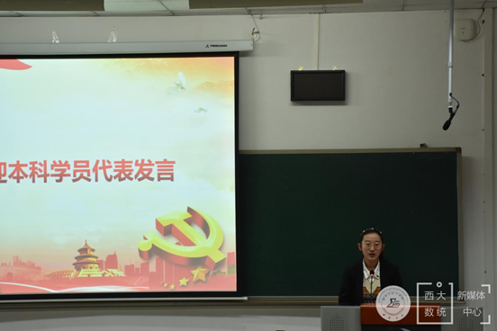随后,本次入党积极分子培训班学员代表、2020级本科学员代表宋子晨与2020级研究生代表王耀哲依次进行发言。他们感谢学院党委为大家提供了这次学习和交流的机会,向大家分享了自己对于党和党员的认识,表示要以党员的标准严格要求自己,珍惜在培训班的学习时光。