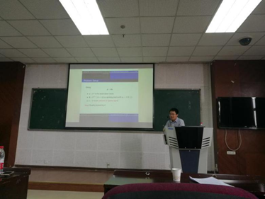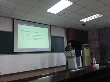 接下来温金明教授进行了题为“Exact Sparse Signal Recovery via Orthogonal Matching Pursuit with Prior Information”的报告。温教授首先介绍了信号恢复的相关理论并且提到了如今在物联网上的应用,之后介绍了其所研究的正交匹配追踪(OMP)信号恢复方法,并且指出了此方法可以精确恢复原始信号的概率特征及误差上界与下界,最后用相应数值实验表明了其所提OMP方法具有很好的恢复效果。