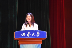 接下来,2019届本科毕业生代表郭元芳进行发言。她回忆大学学习与生活的点点滴滴,为期末考试废寝忘食,为建模比赛通宵达旦;班委的碎碎叨叨,部门同事的互帮互助;与此同时,她也展望更加灿烂的未来,坚信今天站在这里的毕业生将会在教育行业、企业、或是更深层次的学术研究中绽放属于自己的光芒。
