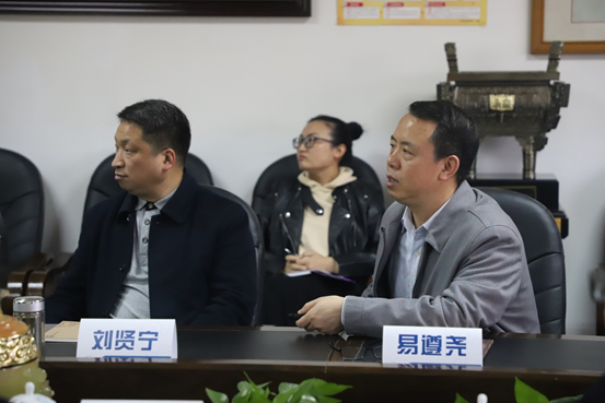 在调研会上,易遵尧书记从学院基本情况、教育教学及立德树人情况、学科与科研工作情况、人才队伍建设情况、财务收支与绩效分配情况、党建工作情况、存在的主要困难与问题等方面进行详尽的汇报。