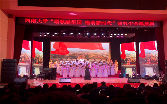 为传承五四精神,讴歌中华人民共和国成立70年来走过的辉煌历程和取得的伟大成就,由学校党委研究生工作部、研究生院主办、校研究生会承办的437bwin必赢国际“颂歌献祖国唱响新时代“研究生合唱展演于5月15日晚19:00整在光大礼堂顺利举行,437必赢会员中心数乐合唱团参加展演。