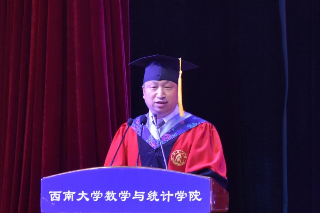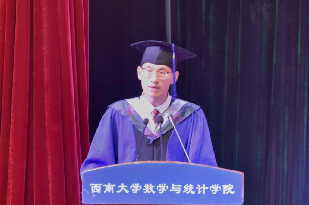 学院常务副院长刘贤宁以“志存高远,踔厉奋发向未来”为题深情寄语毕业生。他代表学院全体教职工和在校同学向顺利完成学业的506名同学表达最热烈的祝贺,勉励毕业生在未来的成长道路上,保持理想、行动、精神积极向上,希望毕业生始终不忘初心、不惧风雨,期盼毕业生在数学的山峰比肩,在祖国的基层扎根,激励毕业生用青春的能动力和创造力为全面建设社会主义现代化国家,为实现中华民族伟大复兴的中国梦不懈奋斗。
