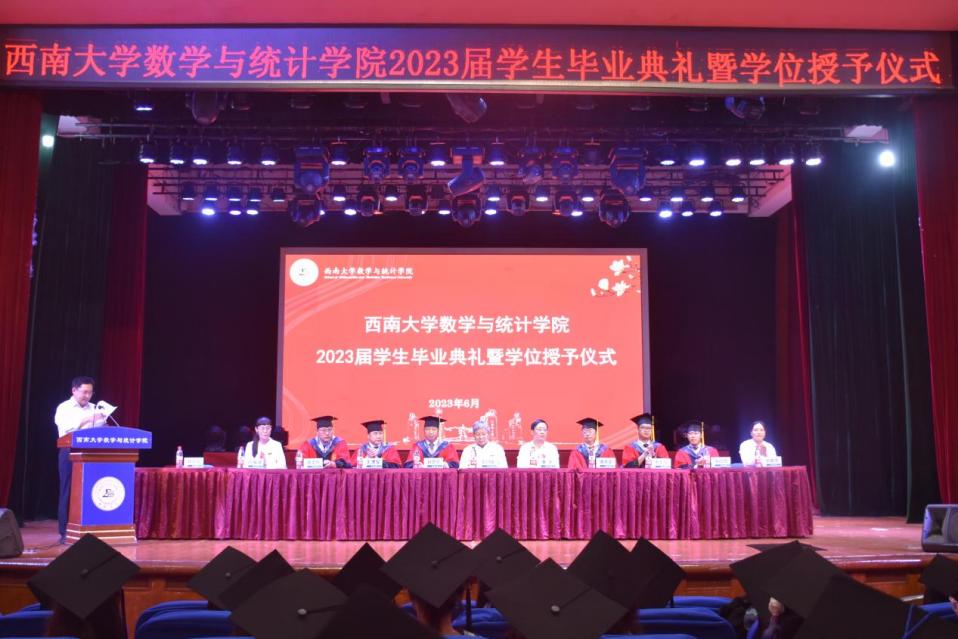 蓝花楹开,毕业的脚步如期而至。6月21日下午三点,学院在光大礼堂举行2023届学生毕业典礼暨学位授予仪式,383名本科生、120名硕士生、3名博士生顺利完成学业,即将奔赴新的人生旅途。国家级教学名师、437bwin必赢国际原常务副校长宋乃庆教授、437必赢会员中心全体领导班子成员、学院学术委员会成员、教师代表、各年级辅导员、部分毕业生家长亲友以及全体在校毕业生共同参加,见证光荣时刻。典礼暨授位仪式由学院副院长商彦英主持。