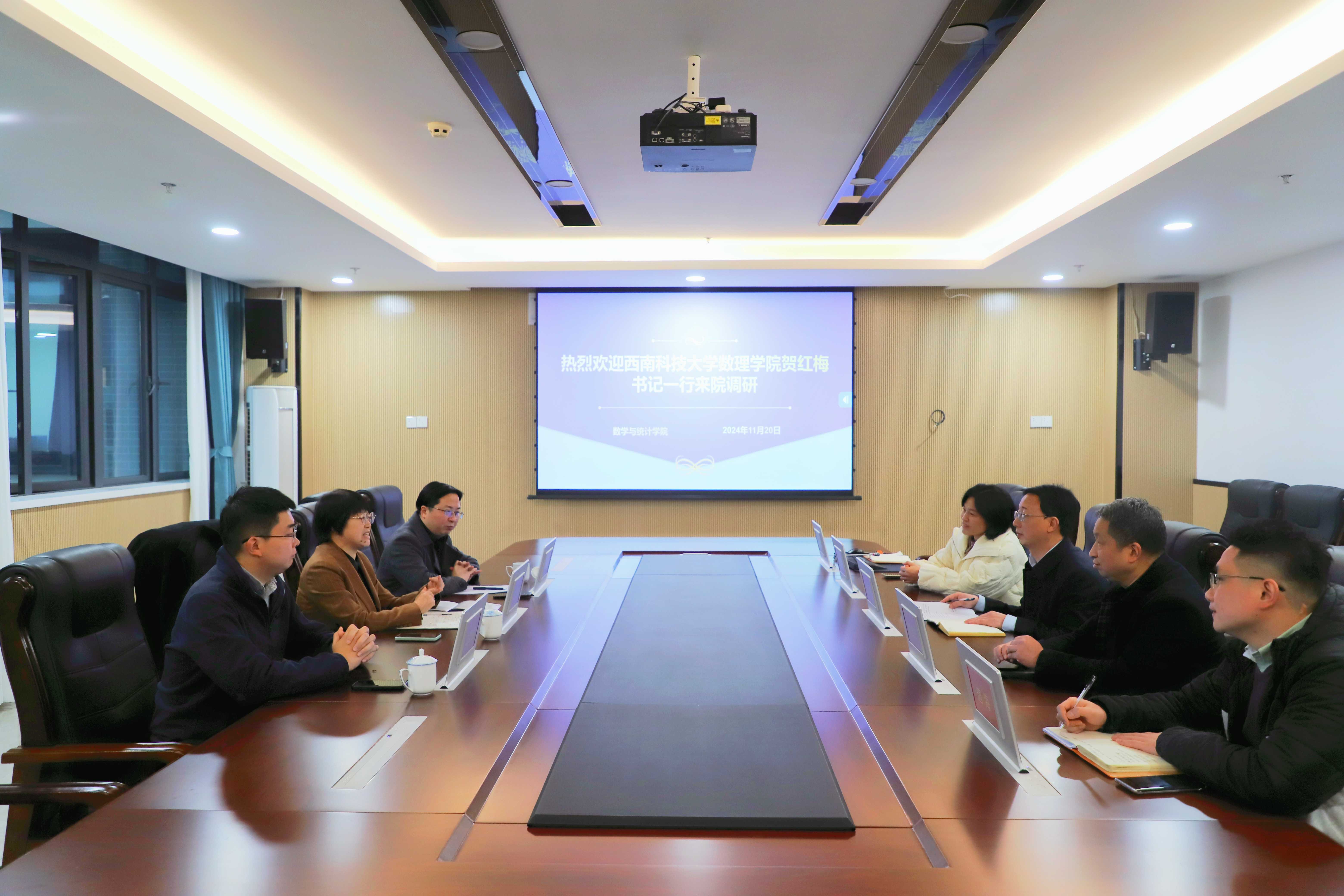 11月20日下午,西南科技大学数理学院党委书记贺红梅带队来我院围绕党建工作、人才工作、数学类专业人才培养工作进行交流调研。座谈会由学院党委书记唐宇主持,学院院长刘贤宁、党委副书记 纪委书记田春荣、教学工作办相关人员参加会议。