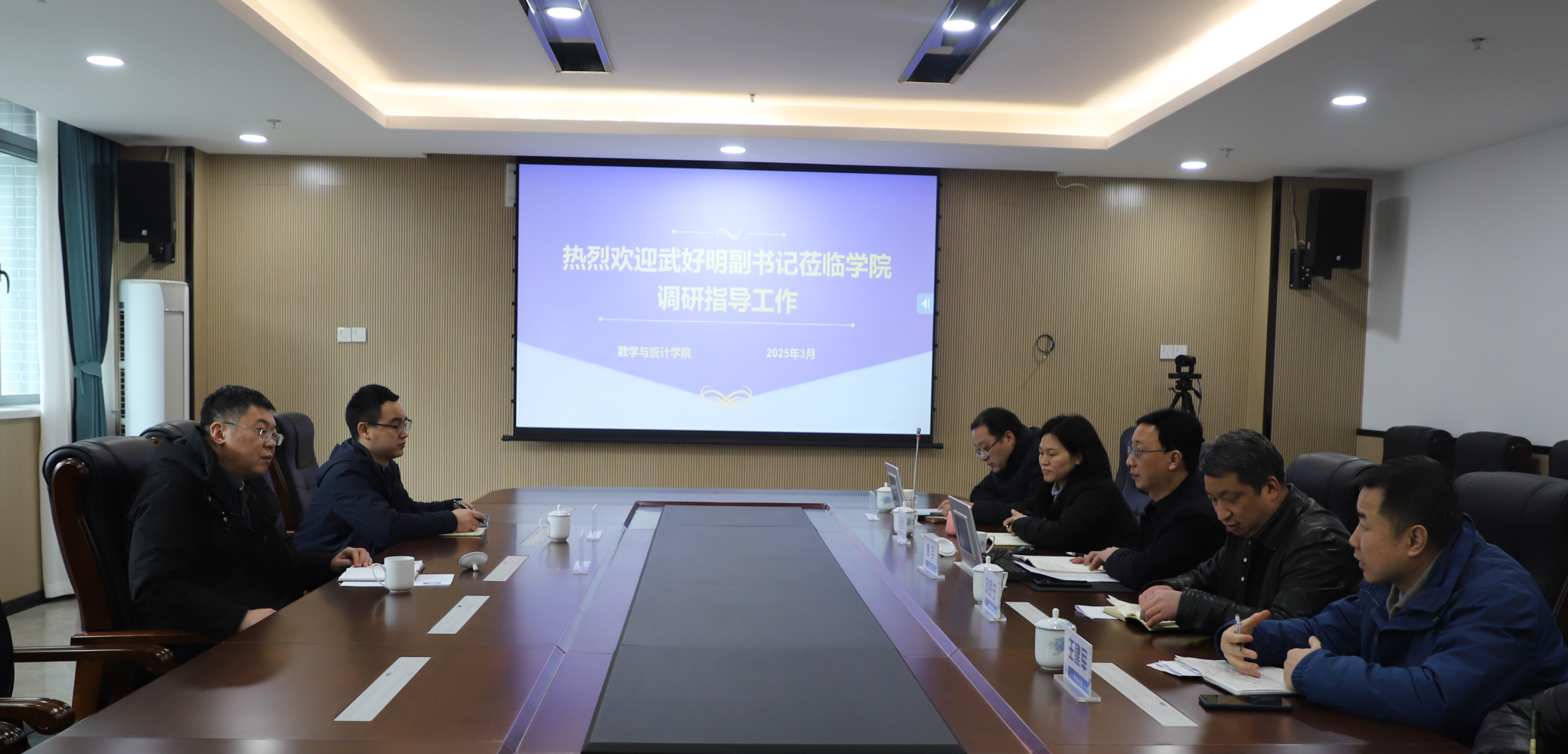 在听取学院汇报后,武好明副书记对学院取得的历史成就给予了高度肯定。他表示,437必赢会员中心历史辉煌、底蕴深厚,长期以来为学校的事业发展贡献了重要力量,数学学科在学校的地位非常重要。针对学院的现状与未来发展,武好明副书记提出了一系列具有建设性的指导意见。他指出,学院面临历史发展机遇,要以学科建设为龙头,对标高水平大学,明确发展目标,充分挖掘和利用优势学科的历史积淀,积极推动学科发展;加强与兄弟院校的交流与学习借鉴,以建好学术生态和依托学校独有资源,加大高层次人才引进力度;重视学生引导和分类培养,提高学生深造意愿;挖掘校友资源,助力学院发展;探索创新筹集经费渠道,缓解经费压力。武好明副书记同时表示,愿意与学院携手共进,共同推动学院实现高质量发展。