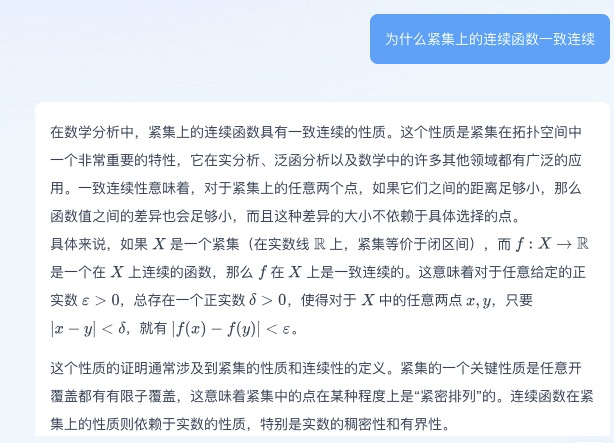 在“AI+数学”的深度融合实践中,平台创新推出多项智能工具。手写推导可一键转化为标准LaTeX公式,解决公式编辑难题;智能学习助手通过苏格拉底式对话主动推荐学习任务,精准定位学生薄弱知识点;智能助教系统解答“紧集上连续函数为何一致连续”等抽象问题,助力学生深度理解数学原理。