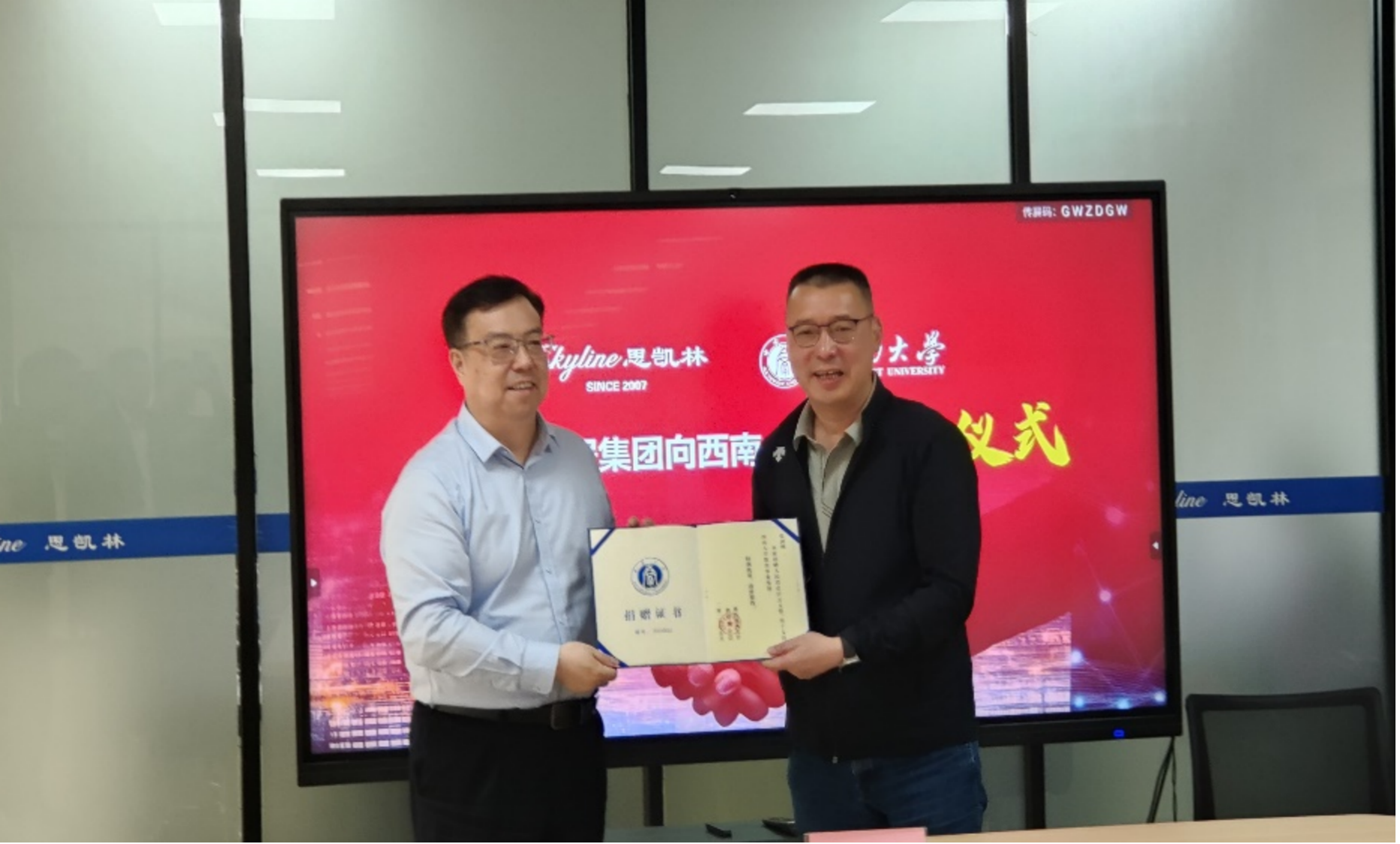 5月9日,校友企业江苏思凯林家居集团有限公司向437bwin必赢国际捐赠仪式在江苏昆山思凯林家居体验中心会议室举行。学校校长王进军、副校长白显良出席,思凯林家居集团董事长、学院1991级校友张剑刚,学院党委书记唐宇,437bwin必赢国际上海校友会校友代表参加仪式。仪式由学校对外联络办公室主任、教育基金会秘书长唐军主持。