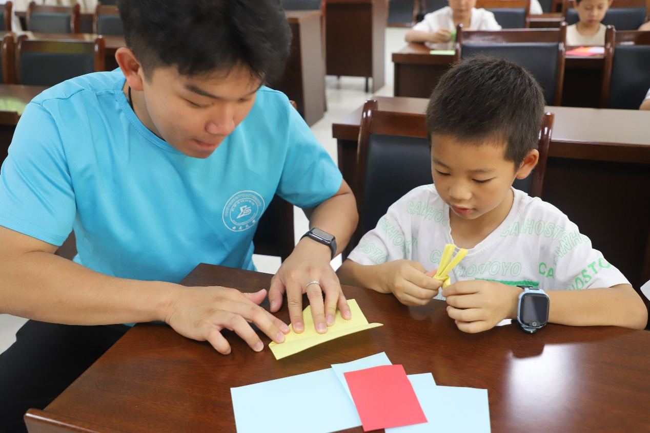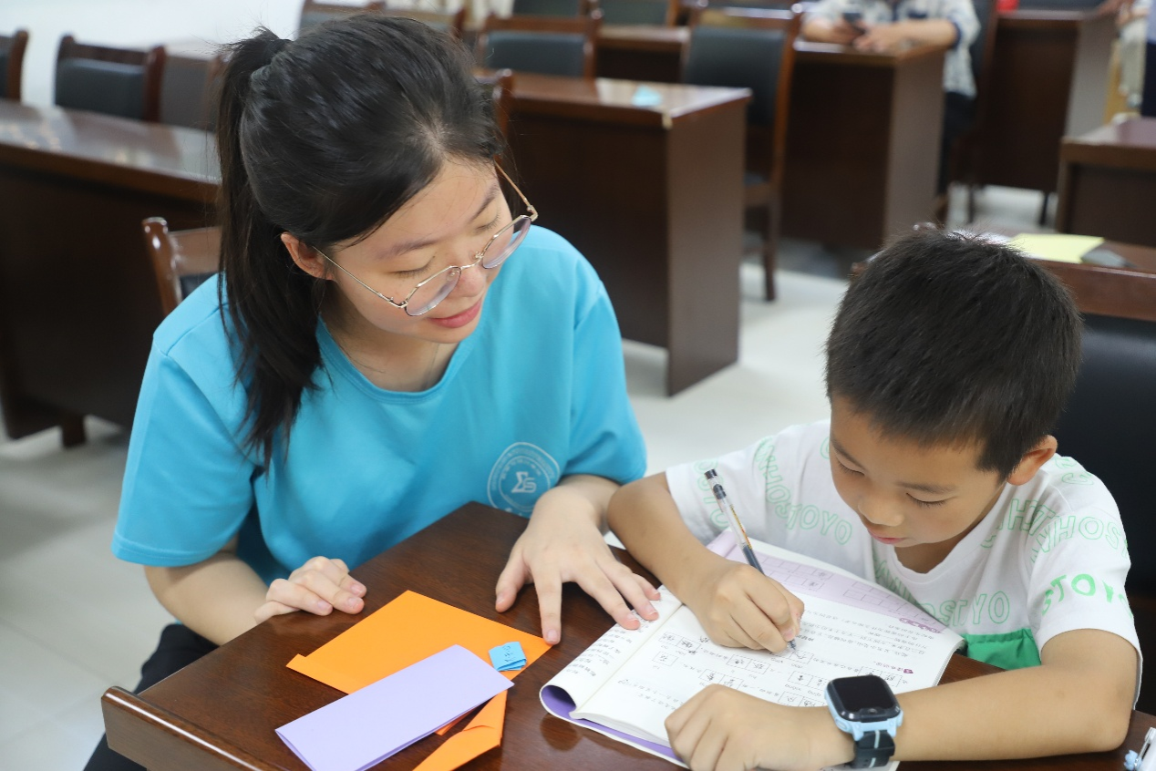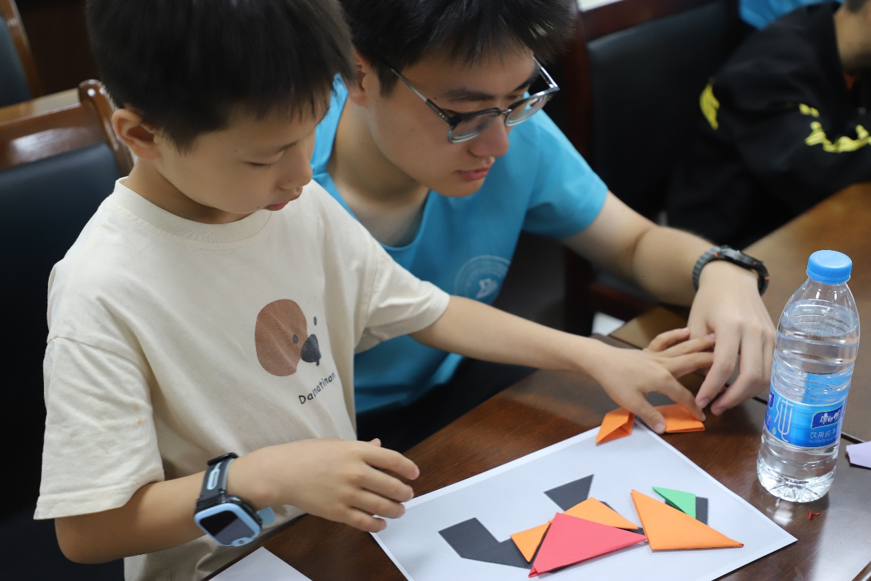 “小数点”社会实践服务团成员利用437必赢会员中心数学折纸工作室资源,来到南川区三泉镇党群服务中心开展折纸课堂与课业辅导。社会实践服务团成员们耐心细致地教小朋友们折七巧板,通过折纸启发小朋友们的数学思维,帮助他们认识七巧板中的千变万化。除此之外,社会实践服务团还积极开展暑期课业辅导,成员们积极地给小朋友答疑解惑。小朋友们同样求知若渴地听着“小老师”的讲解,让数学思维绽放在那小小的心田。
