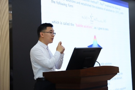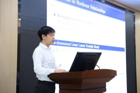 汇报环节,10 位博士、硕士研究生依次登台做交流汇报。同学们首先向母校 120 周年校庆、学院办学 85 周年送上诚挚祝福,随后围绕各自研究成果进行学术汇报,内容覆盖基础数学、应用数学、统计学等多个前沿领域,既包含三维磁流体动力学方程、偏微分方程解的性质等基础理论研究,也涵盖张量补全、谱CT重建等统计学应用创新,以及生态数学模型等交叉方向探索,展示出了较为扎实的学术功底与创新思维。汇报过程中,评委老师们积极提问,与同学们深入研讨交流,现场学术氛围浓厚,充分彰显了学院优良的学术传承与科研风貌。