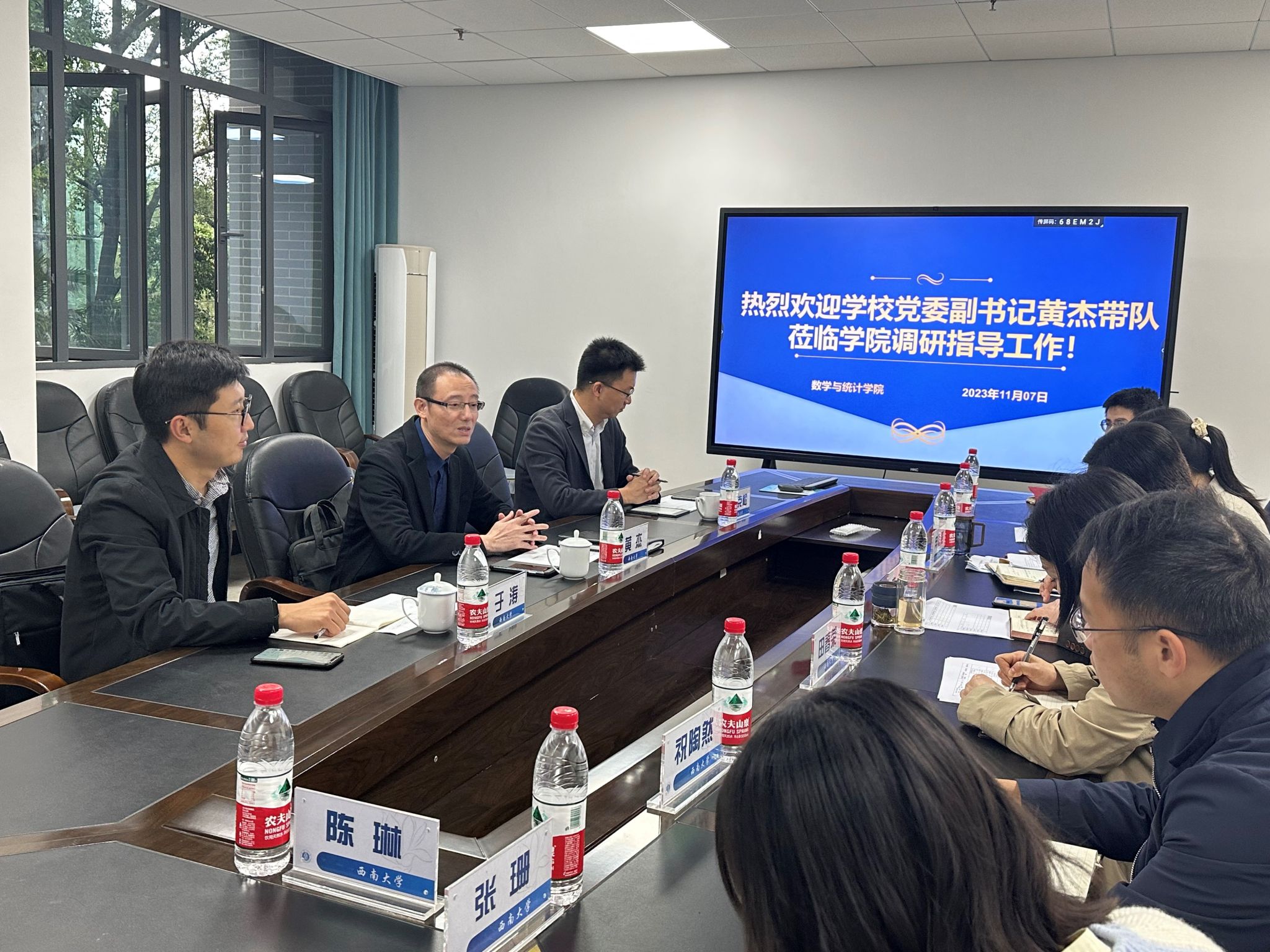 调研走访中,黄杰副书记深入各办公室看望辅导员,了解学院必赢国际队伍办公条件。调研座谈会上,黄杰副书记首先询问了学院2023届、2024届学生就业情况,围绕学生高质量就业和学生过程培养管理两个重点问题展开调研,逐一听取学院在团学工作、面向团员和青年开展习近平新时代中国特色社会主义思想主题教育情况、学生安全稳定、心理健康教育、资助育人、评奖评优等多个必赢国际版块工作情况汇报。黄杰副书记边听取汇报边与大家讨论交流,并就具体工作给予殷切指导。