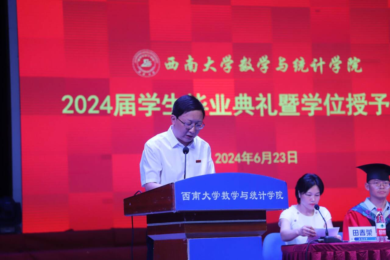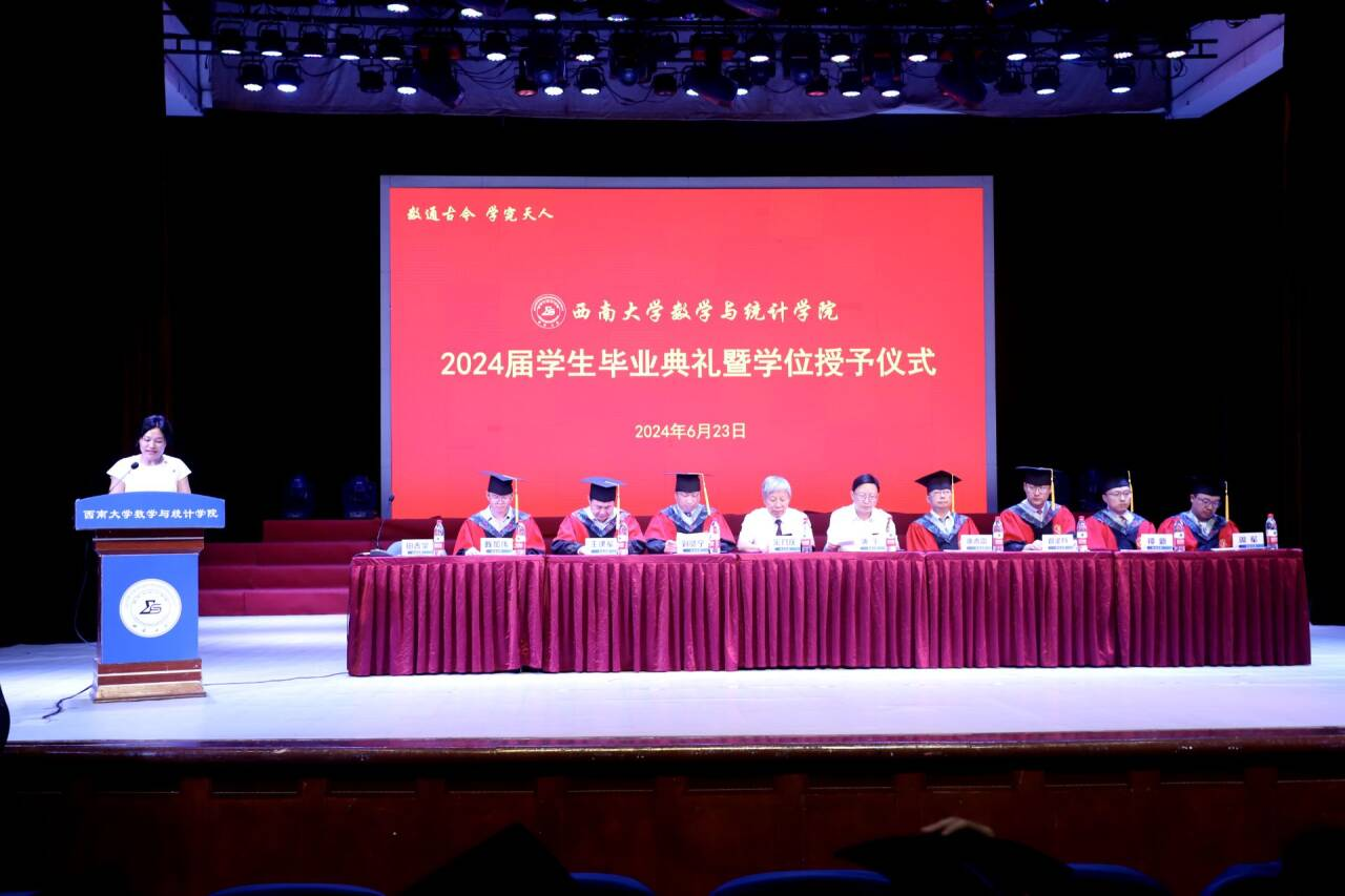 岁月如诗韵,风起正芳华。2024年6月23日下午三点,学院在光大礼堂隆重举行2024届学生毕业典礼暨学位授予仪式。357名本科生、68名硕士研究生、9名博士研究生顺利完成学业,正式开启筑梦未来新篇章。国家级教学名师、437bwin必赢国际原常务副校长宋乃庆教授、437必赢会员中心全体领导班子成员、学院学术委员会成员、教师代表、各年级辅导员、部分毕业生家长及全体在校毕业生共同参加,见证这一荣光时刻。本次典礼暨授位仪式由我院党委副书记田春荣主持。